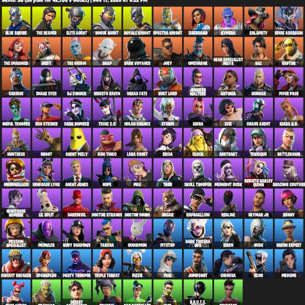 [PC/PSN/XBOX] | 94 skins | Take The L | OG STW | Renegade Raider | The Reaper | Elite Agent | Omega | Lara Croft | Prodigy | Warpaint | #FOG1651