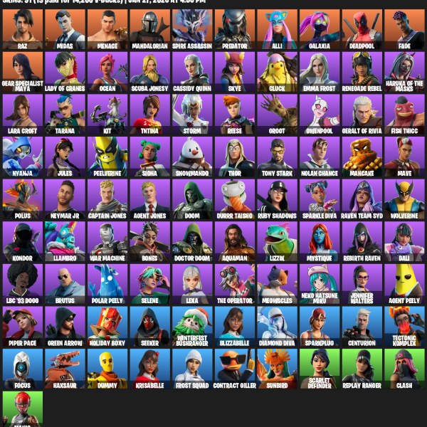 [PC/XBOX] | 165 skins | Renegade Raider | Hades | Valeria | Peter Griffin | Zeus | Oscar | Undercover Skye | Keisha Cross | #JLX2259