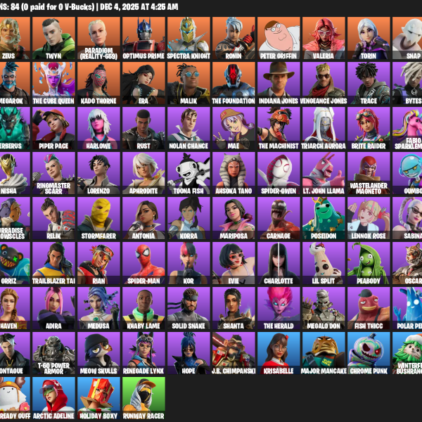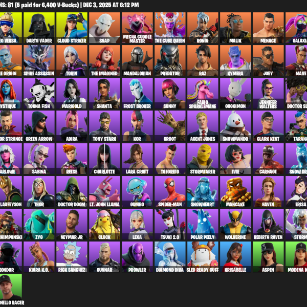 We offer legitimate and verified Fortnite accounts featuring the iconic kado thorne outfit.