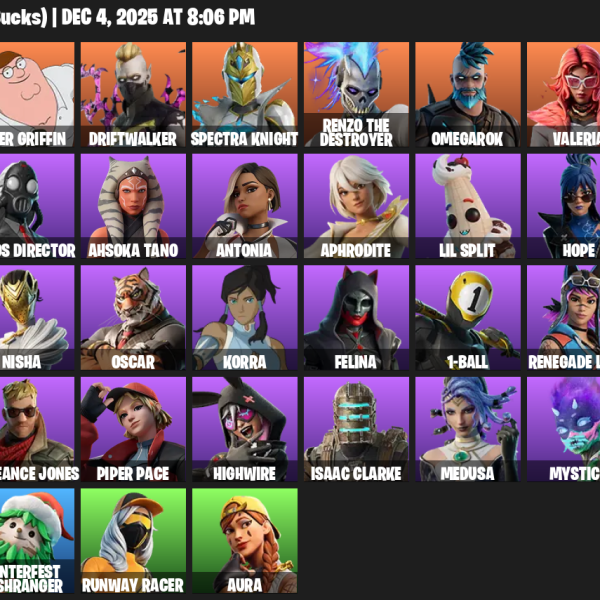 We offer legitimate and verified Fortnite accounts featuring the iconic kado thorne outfit.