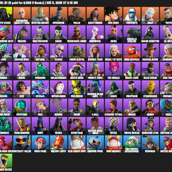 We offer legitimate and verified Fortnite accounts featuring the iconic kado thorne outfit.