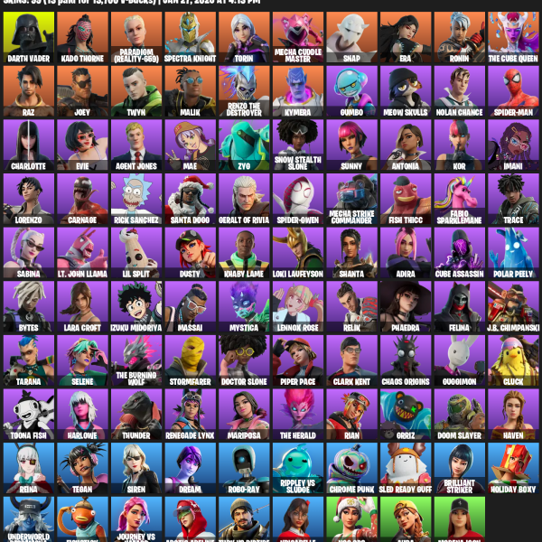 [PC/XBOX] | 165 skins | Renegade Raider | Hades | Valeria | Peter Griffin | Zeus | Oscar | Undercover Skye | Keisha Cross | #JLX2259