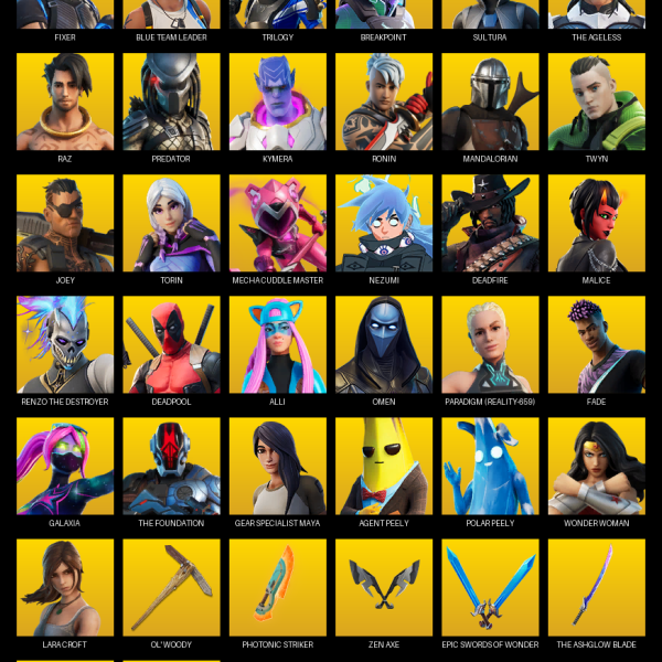 [PC/XBOX] | 156 skins | Omega | Lara Croft | Rogue Agent | Darth Vader | Trailblazer | Mandalorian | Torin | Optimus Prime | Spire Assassin | #AEC3865
