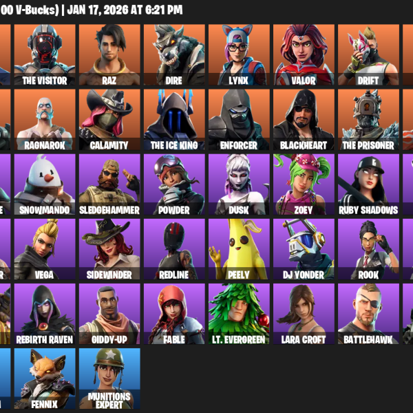 [PC/XBOX] | 54 skins | 1300 V-bucks | Omega | Lara Croft | Mako | Rogue Agent | Carbide | The Visitor | Raz | Dire | Lynx | Valor | Drift | #CWA2757