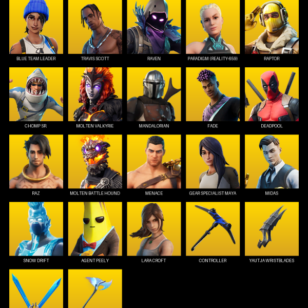 [PC/XBOX] | 54 skins | Leviathan Axe | Lara Croft | Reaper Axe | Fade | Menace | Vi | Eternal Knight | Mandalorian | Predator | Blaze | #YGC5726