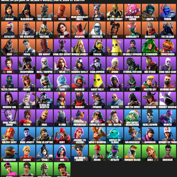 [PC/PSN/XBOX] | 94 skins | 500 V-bucks | Merry Mint Axe | Sorana | Blackheart | The Prisoner | Hybrid | Gear Specialist Maya | Lynx | #VXO7914