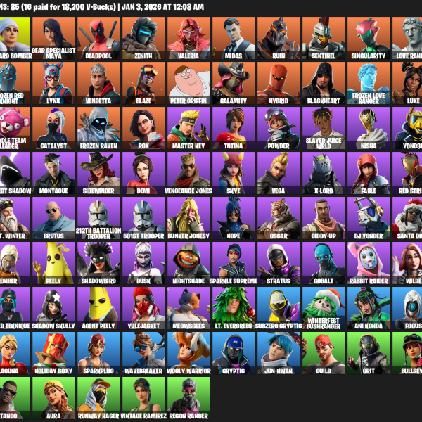 [PC/XBOX] | 85 skins | Blizzard Bomber | Gear Specialist Maya | Deadpool | Zenith | Valeria | Midas | Ruin | Sentinel | Singularity | #YOR0055