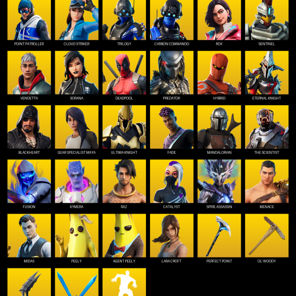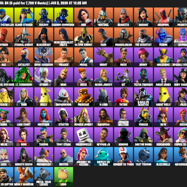 [PC/XBOX] | 84 skins | 550 V-bucks | Lara Croft | Point Patroller | Cloud Striker | Trilogy | Carbon Commando | Rox | Sentinel | Vendetta | #ASH2713