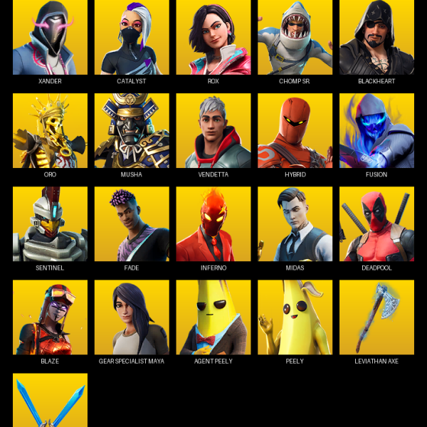 [PC/XBOX] | 77 skins | Leviathan Axe | Xander | Catalyst | Rox | Chomp Sr. | Blackheart | Oro | Musha | Vendetta | Hybrid | Fusion | #SDM4915