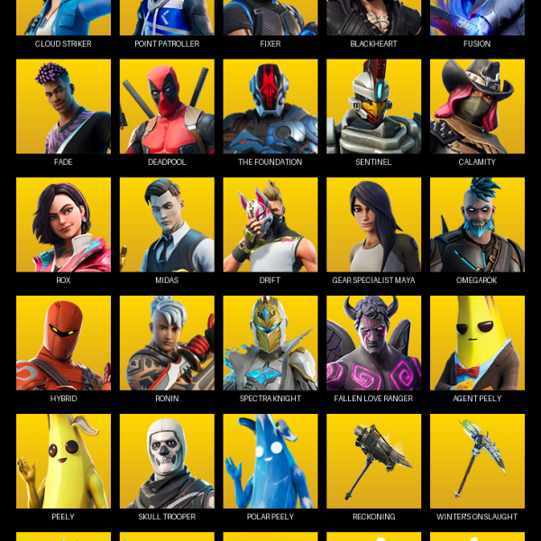 [PC/XBOX] | 71 skins | Cloud Striker | Point Patroller | Fixer | Blackheart | Fusion | Fade | Deadpool | The Foundation | Sentinel | #RMZ5959