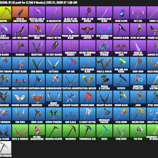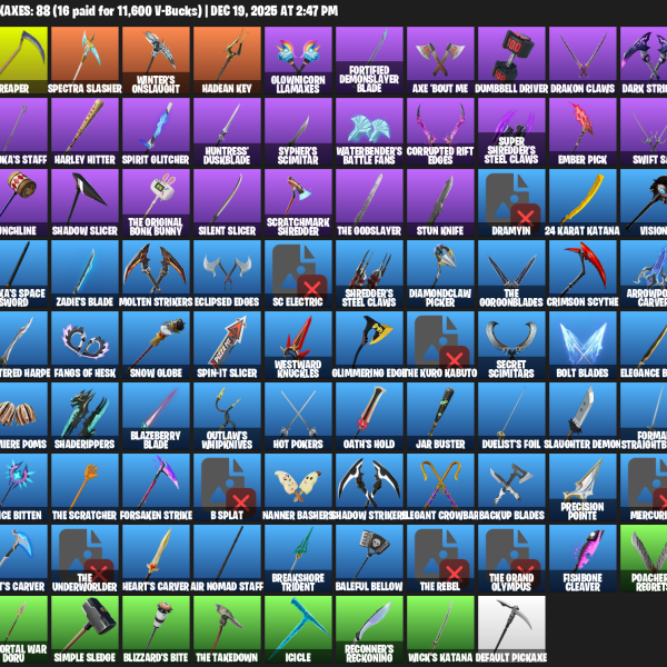 [PC/PSN/XBOX] | 84 skins | Reaper Axe | John Wick | Driftwalker | Zeus | Spectra Knight | Valeria | Inferno | Peter Griffin | Hades | #NYG4872