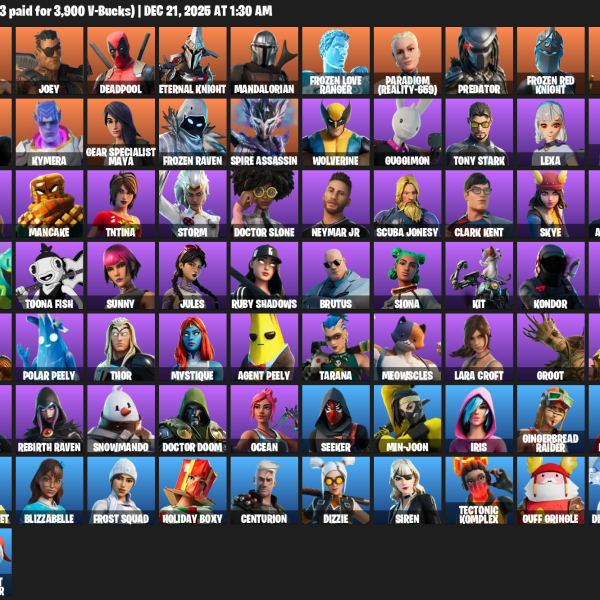 [PC/PSN/XBOX] | 71 skins | Lara Croft | Reaper Axe | Raz | Joey | Deadpool | Eternal Knight | Mandalorian | Frozen Love Ranger | #YOR7281
