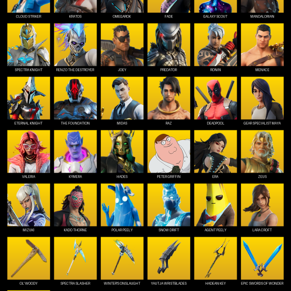 [PC/PSN/XBOX] | 140 skins | Reaper Axe | Neo Versa | Valeria | Spectra Knight | Era | Peter Griffin | Optimus Prime | Mandalorian | #IMZ4634