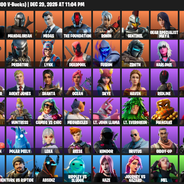 [PC/PSN/XBOX] | 65 skins | Leviathan Axe | Joey | Blaze | Deadpool | Menace | Fade | Kymera | Gear Specialist Maya | Mandalorian | Midas | #ZBX9363
