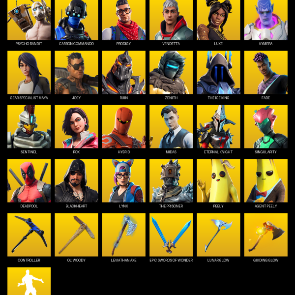 [PC/PSN/XBOX] | 68 skins | 1550 V-bucks | Leviathan Axe | Psycho Bandit | Carbon Commando | Prodigy | Vendetta | Luxe | Kymera | #PCY2872
