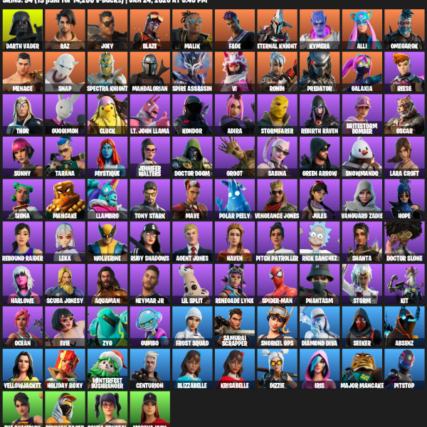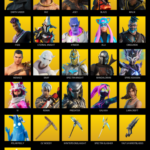 [PC/PSN/XBOX] | 94 skins | 3350 V-bucks | Lara Croft | Darth Vader | Raz | Joey | Blaze | Malik | Fade | Eternal Knight | Kymera | Alli | #LMM6451