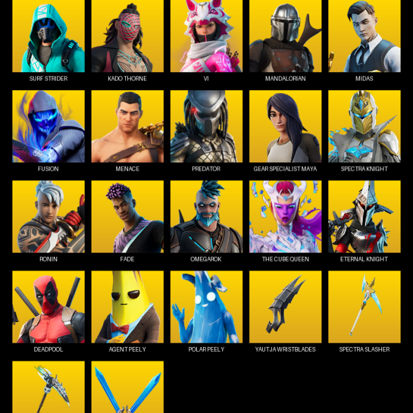 [PC/PSN] | 84 skins | 950 V-bucks | Surf Strider | Kado Thorne | Vi | Mandalorian | Midas | Fusion | Menace | Predator | #QXI3924