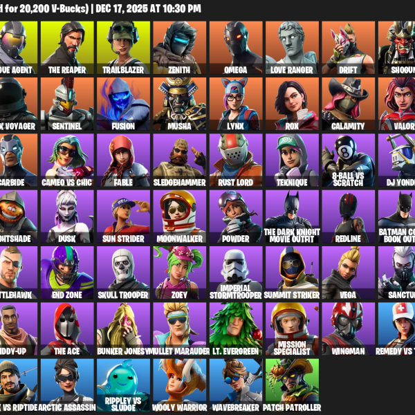 [PC/PSN] | 86 skins | 600 V-bucks | OG STW | Rose Team Leader | Warpaint | Zenith | Frozen Love Ranger | Calamity | Paradigm (Reality-659) | #BQX9017