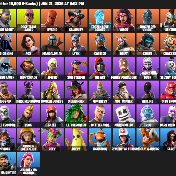 [PC/PSN/XBOX] | 63 skins | 850 V-bucks | Take The L | OG STW | Warpaint | Rogue Agent | Rose Team Leader | Hybrid | Calamity | #RPQ8319