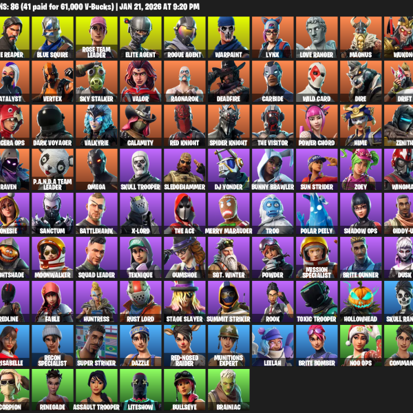 [PC/PSN/XBOX] | 86 skins | Take The L | OG STW | The Reaper | Elite Agent | Blue Squire | Omega | Rose Team Leader | Rogue Agent | Warpaint | #QEZ8021