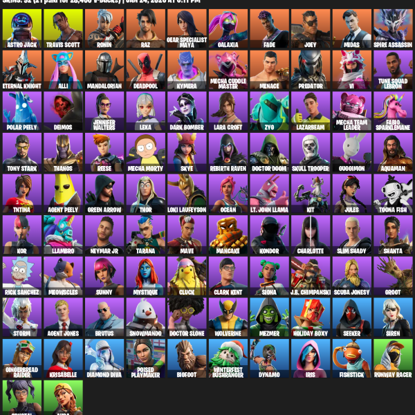 [PC/PSN/XBOX] | 92 skins | Travis Scott | Lara Croft | Astro Jack | Ronin | Raz | Gear Specialist Maya | Galaxia | Fade | Joey | Midas | #ZKW5250