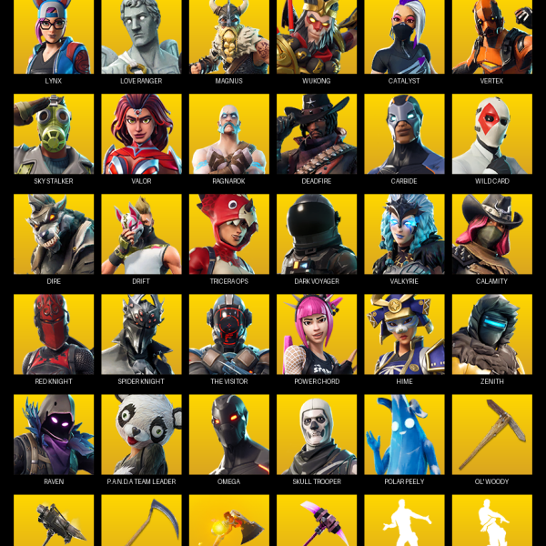 [PC/PSN/XBOX] | 89 skins | Reaper Axe | John Wick | Rogue Agent | Fade | Peter Griffin | Hybrid | Fusion | Midas | Blaze | Carbide | #WYH2367