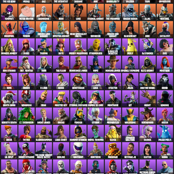 [PC/XBOX] | 158 skins | 750 V-bucks | Lara Croft | Darth Vader | Victor Elite | Blizzard Bomber | The Origin | Joey | Renzo the Destroyer | #LNQ7177