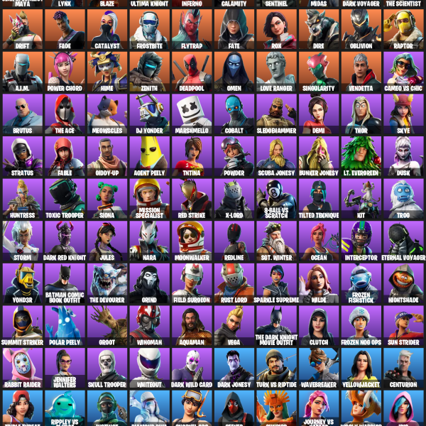 [PC/PSN] | 250 skins | 600 V-bucks | Leviathan Axe | OG STW | Lara Croft | Cole | Rose Team Leader | Breakpoint | Warpaint | World Warrior | #NMC6062