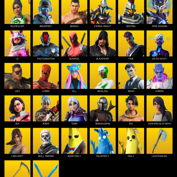 [PC/PSN] | 137 skins | 600 V-bucks | Leviathan Axe | Lara Croft | Major Glory | Breakpoint | Menace | Eternal Knight | Sentinel | #YYQ0398