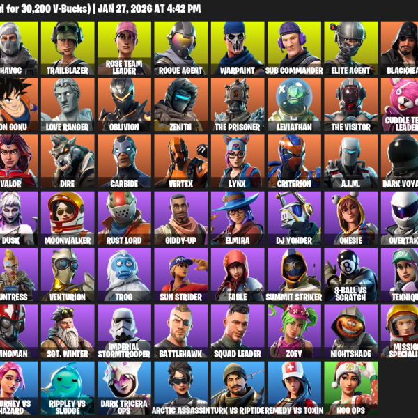 [PC/PSN] | 86 skins | 600 V-bucks | OG STW | Rose Team Leader | Warpaint | Zenith | Frozen Love Ranger | Calamity | Paradigm (Reality-659) | #BQX9017