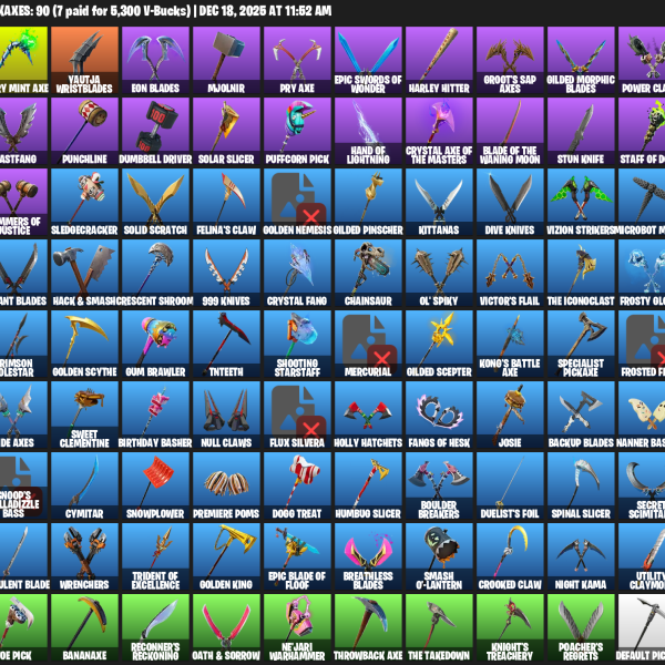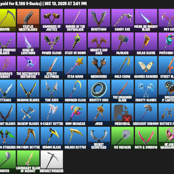 [PC/XBOX] | 54 skins | Leviathan Axe | Lara Croft | Reaper Axe | Fade | Menace | Vi | Eternal Knight | Mandalorian | Predator | Blaze | #YGC5726