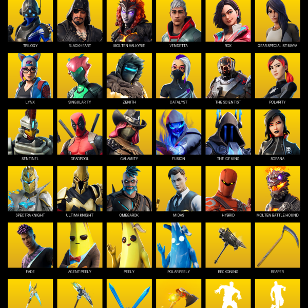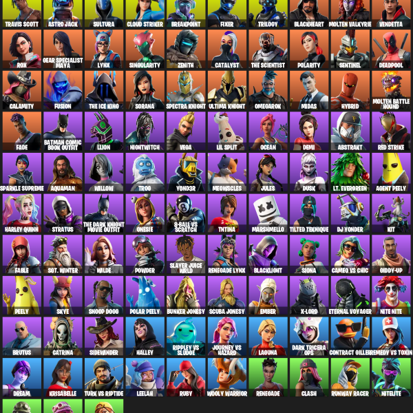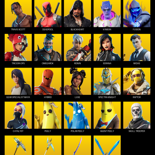 [PC/PSN/XBOX] | 84 skins | 750 V-bucks | Travis Scott | Deadpool | Blackheart | Kymera | Fusion | Tricera Ops | Omegarok | Ronin | Sorana | #QHZ2115