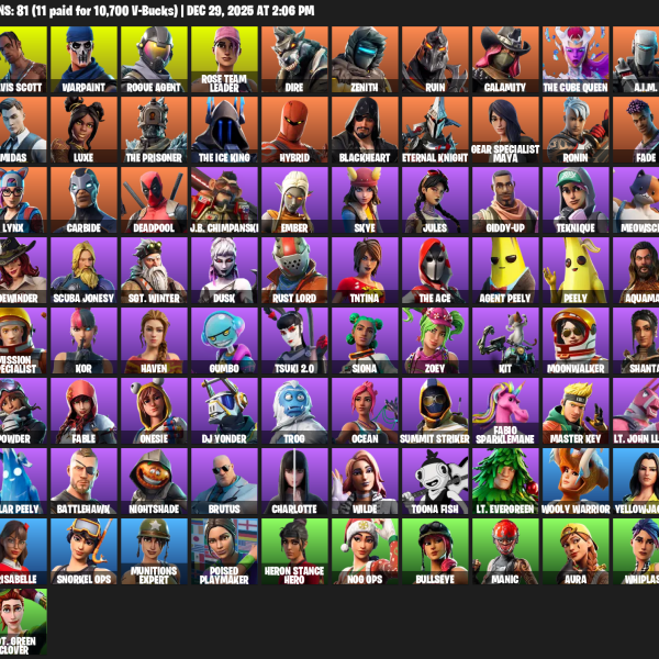 [PC/PSN/XBOX] | 81 skins | Take The L | OG STW | Travis Scott | Warpaint | Rogue Agent | Rose Team Leader | Dire | Zenith | Ruin | Calamity | #UKW1695