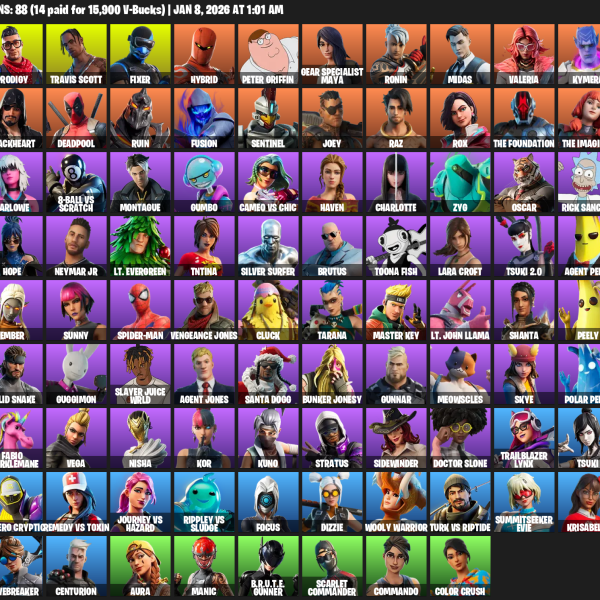 [PC/PSN/XBOX] | 88 skins | Travis Scott | Lara Croft | Prodigy | Fixer | Hybrid | Peter Griffin | Gear Specialist Maya | Ronin | Midas | #WLK1007