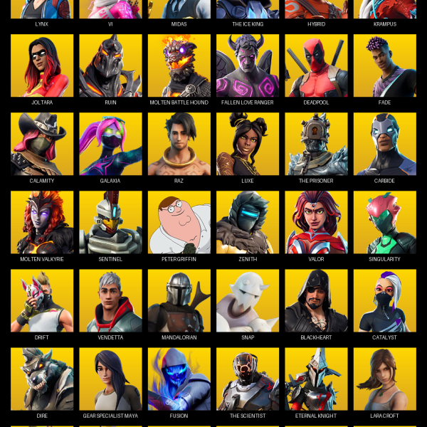 [PC/XBOX] | 54 skins | Leviathan Axe | Lara Croft | Reaper Axe | Fade | Menace | Vi | Eternal Knight | Mandalorian | Predator | Blaze | #YGC5726