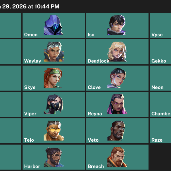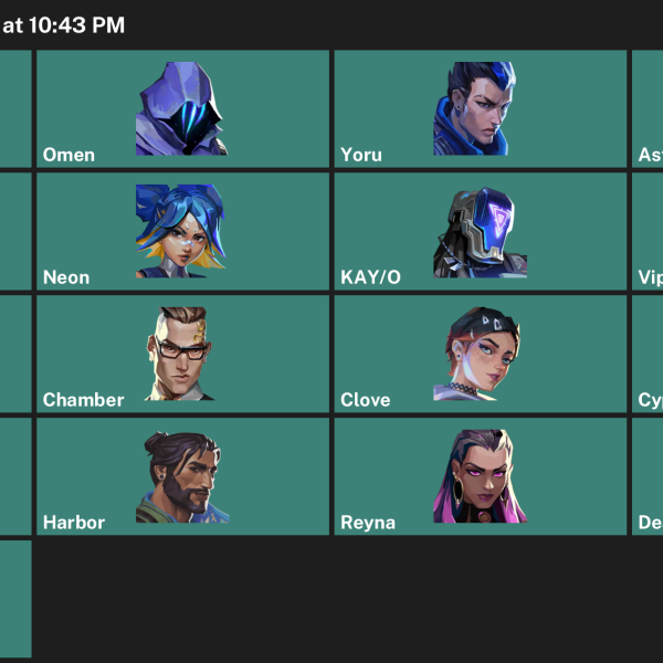 Omen, Iso, Fade, Raze, Gekko, Reyna, Chamber, Yoru