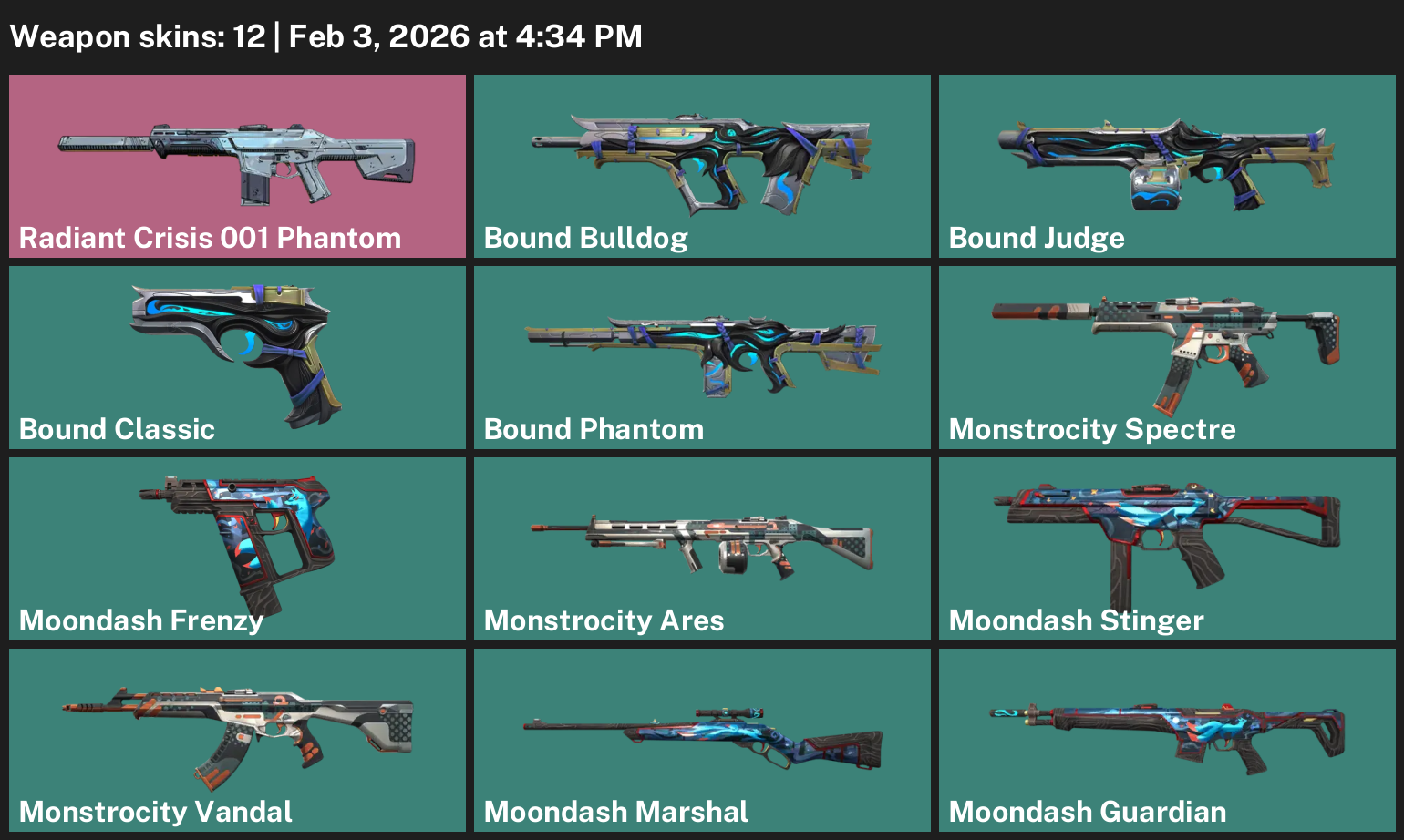 Yoru, Viper, Iso, Breach, Omen, Deadlock, Skye, Killjoy, Reyna, Fade, Raze, Cypher