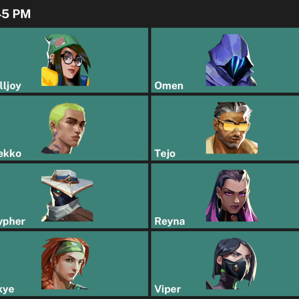 KAY/O, Chamber, Harbor, Astra, Omen, Iso, Gekko, Raze, Reyna, Cypher, Yoru, Breach, Neon, Viper, Fade, Killjoy, Skye, Deadlock
