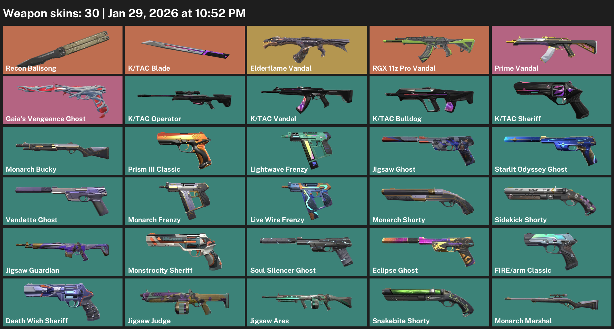 Gekko, Deadlock, Iso, Astra, Breach, Neon, Cypher, Yoru, Reyna, Killjoy, Harbor, Fade, Omen, Viper, Raze, Skye, KAY/O, Chamber
