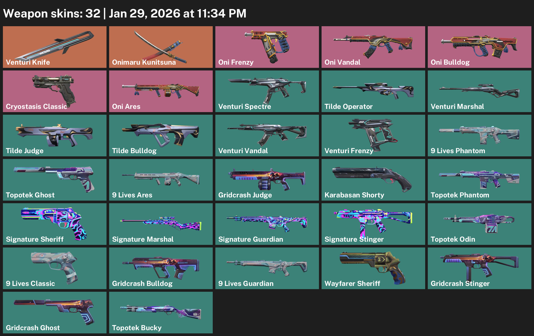 AP | 32 Skins | exp SILVER 1 | Onimaru Kunitsuna | Oni Vandal | Oni Frenzy | Venturi Vandal | 9 Lives Phantom | Topotek Phantom | #OQR9379