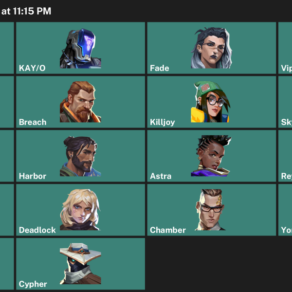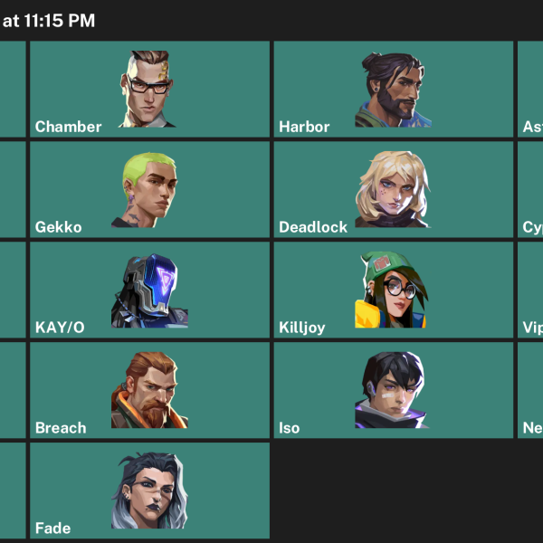Raze, Killjoy, Breach, Astra, Viper, Omen, Reyna, Cypher