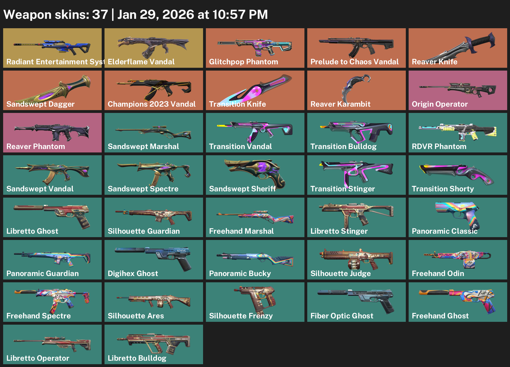 AP | 35 Skins | exp SILVER 2 | Radiant Crisis 001 Phantom | Starlit Odyssey Vandal | 9 Lives Phantom | Iridian Thorn Operator | #FTE3261 $87.99 $60.99