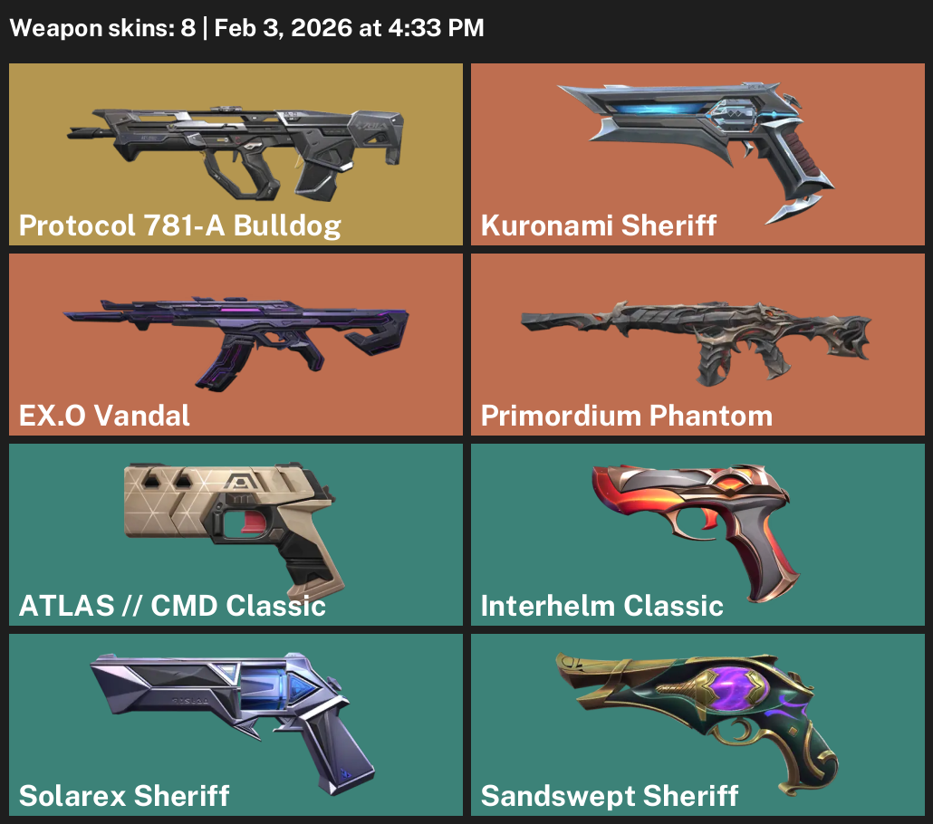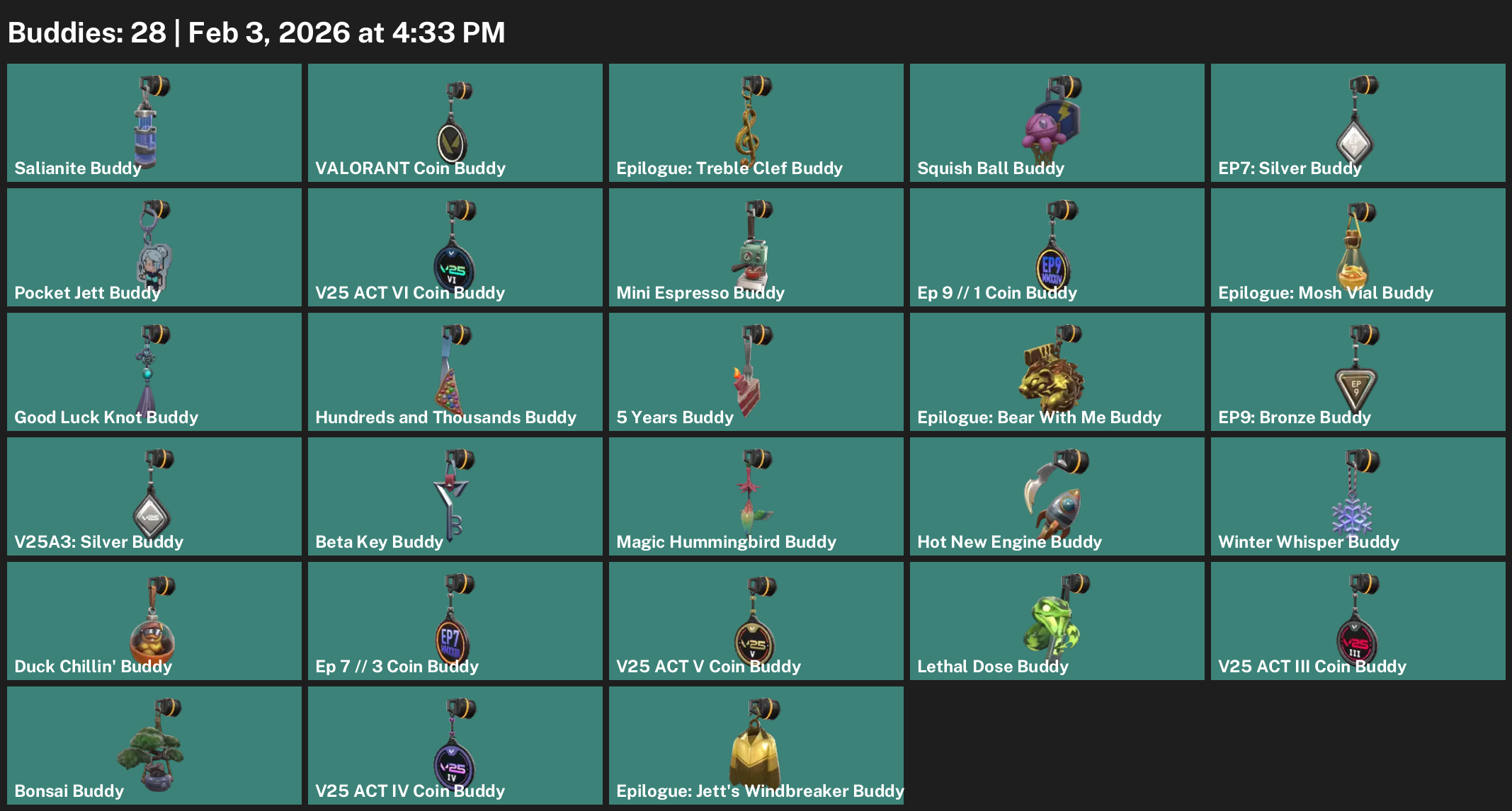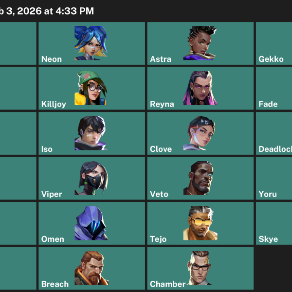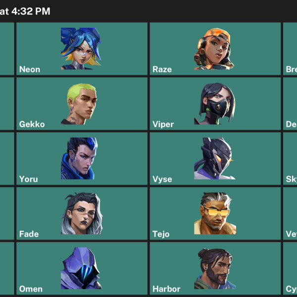 Yoru, Reyna, Harbor, Deadlock, Clove, Iso, Vyse, Gekko, Tejo, Waylay, Breach, Neon, Skye, Cypher, Fade, Omen, Killjoy, KAY/O