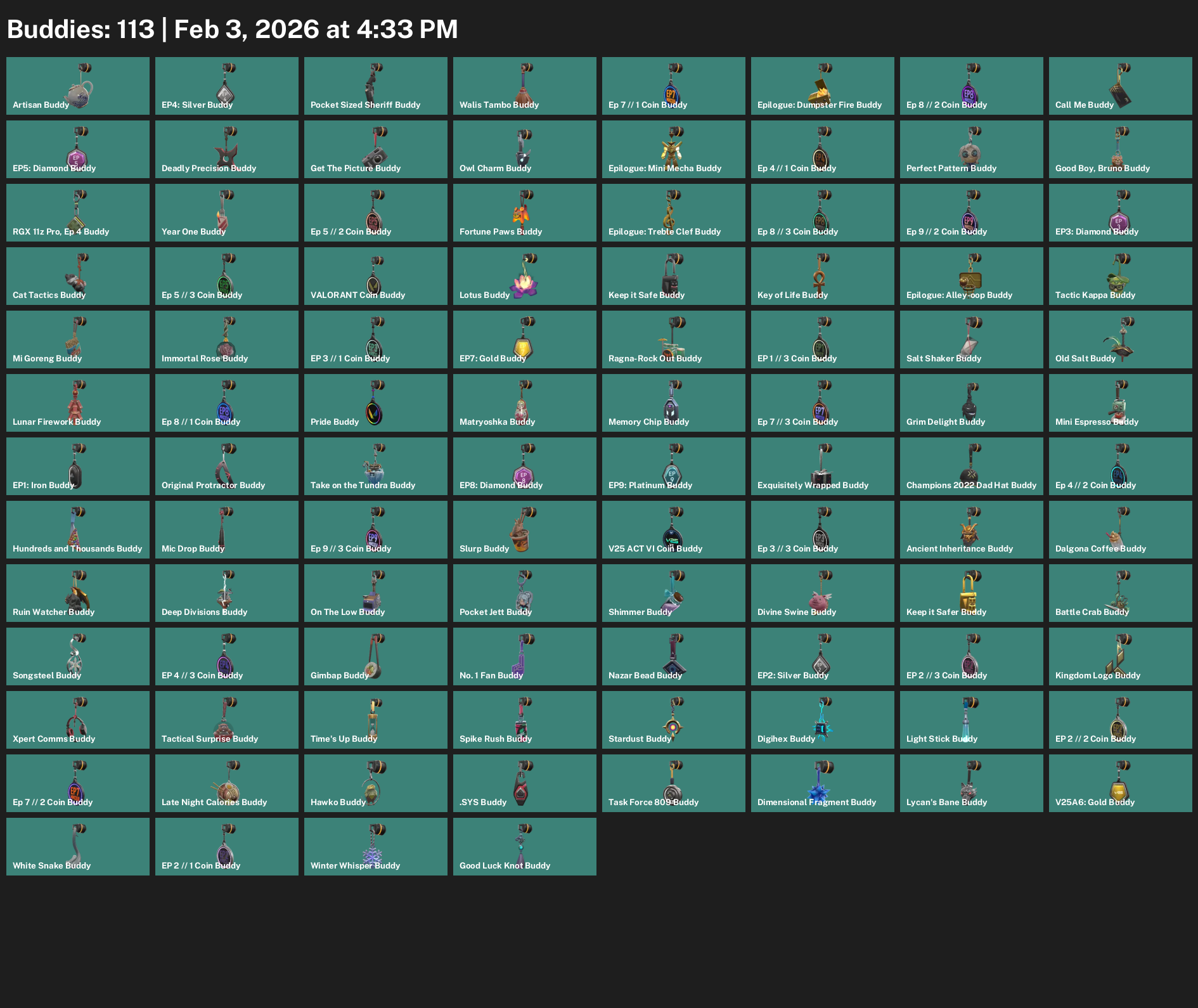 Deadlock, Clove, KAY/O, Chamber, Fade, Harbor, Breach, Raze, Astra, Skye, Cypher, Killjoy, Vyse, Viper, Omen, Reyna, Gekko, Neon, Yoru, Iso