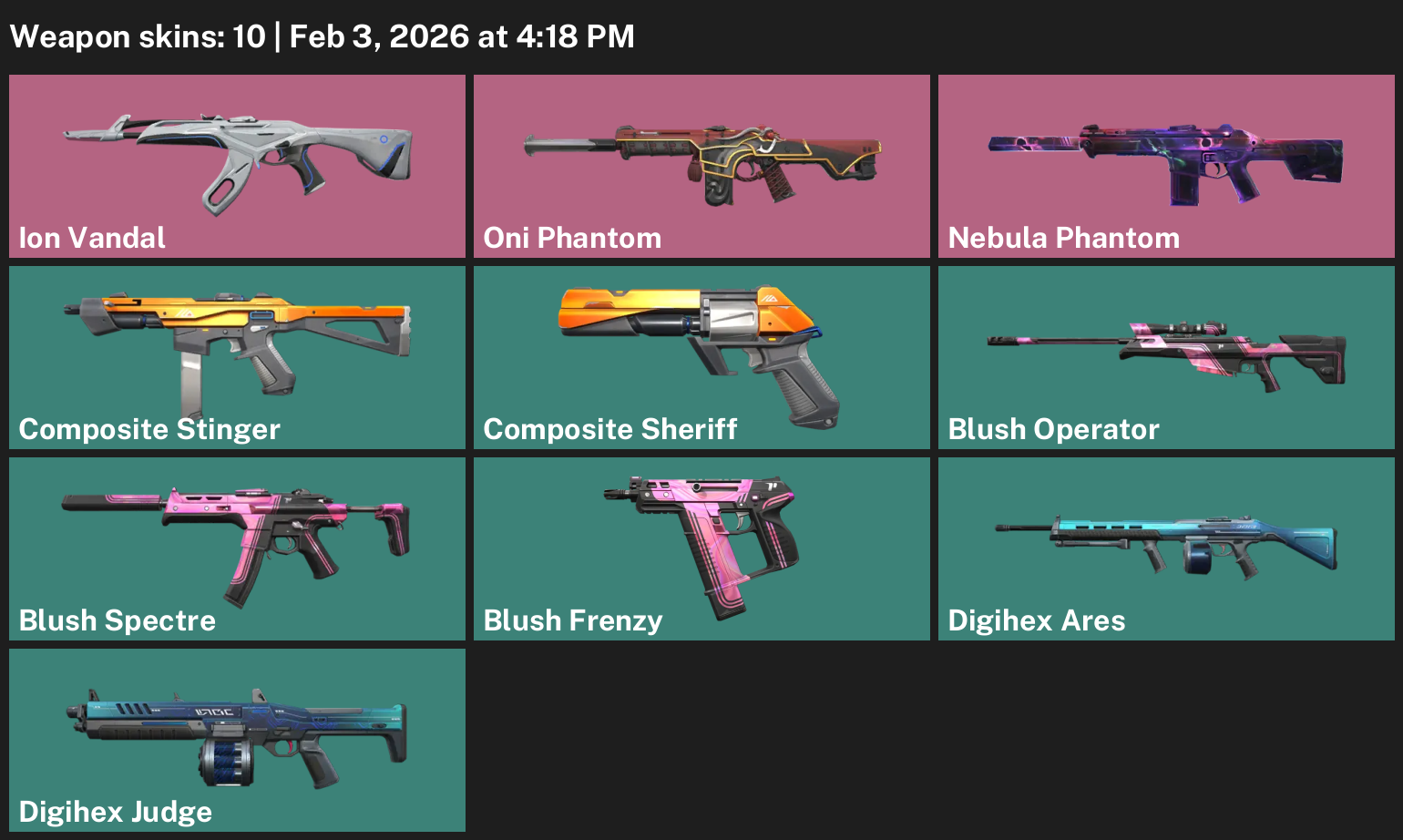 Ion Vandal, Oni Phantom, Composite Stinger, Blush Operator, Digihex Ares