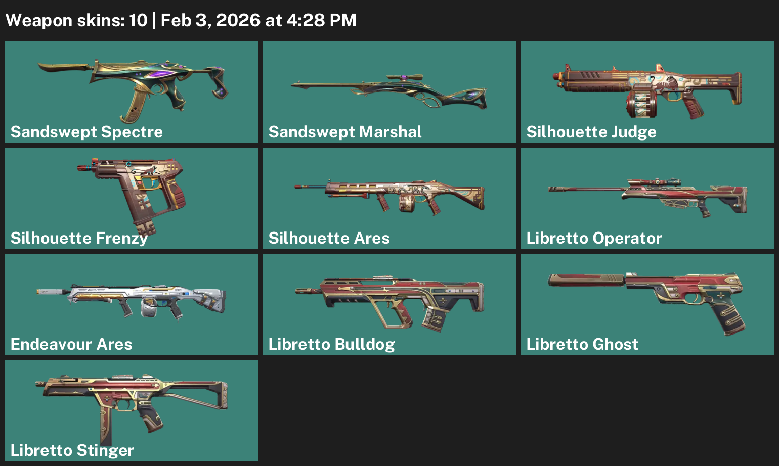 Sandswept Spectre, Silhouette Judge, Libretto Operator, Endeavour Ares