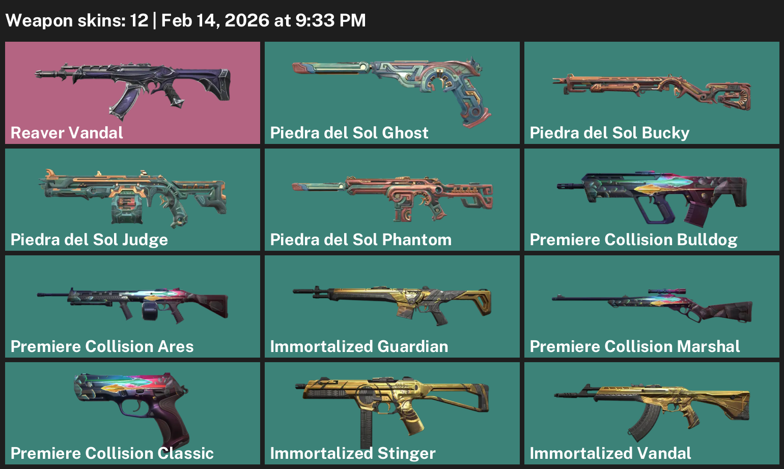 Reaver Vandal, Piedra del Sol Ghost, Premiere Collision Bulldog, Immortalized Guardian