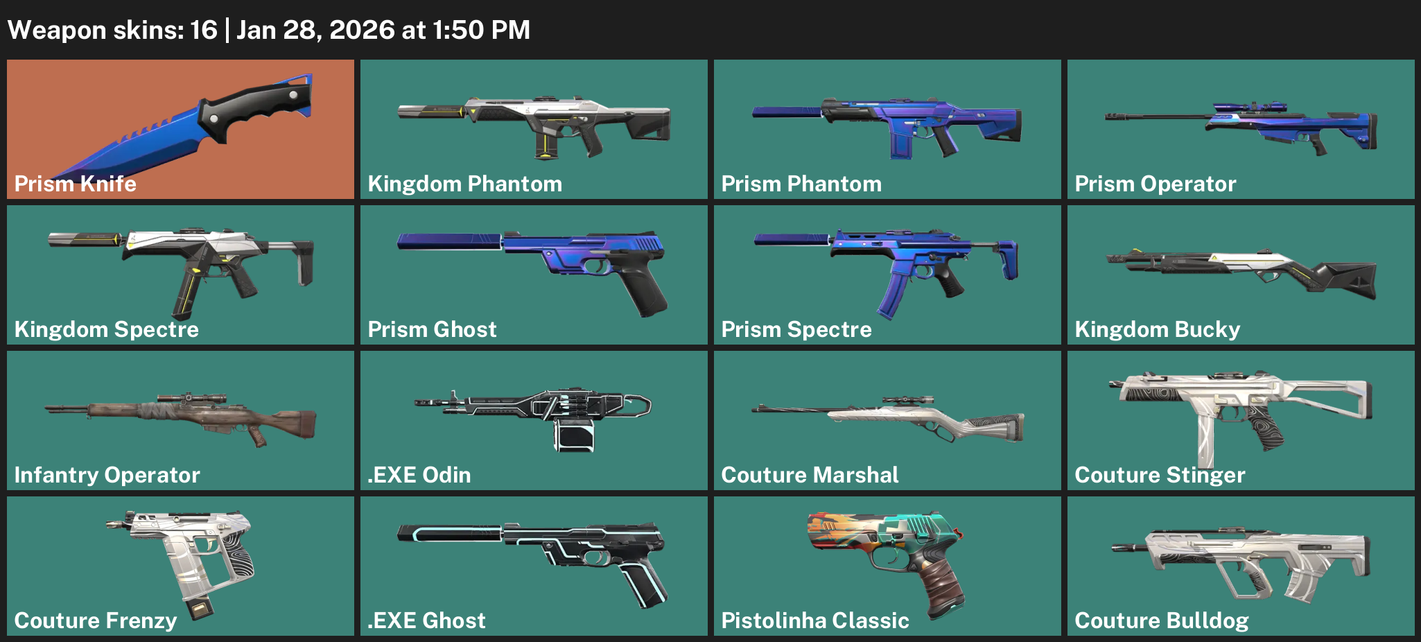 Prism Knife, Kingdom Phantom, Infantry Operator, .EXE Odin, Couture Marshal, Pistolinha Classic