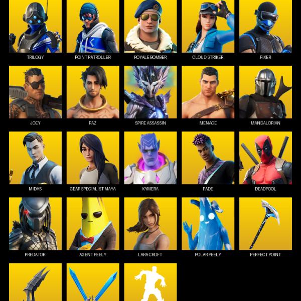 [PC/XBOX] | 58 skins | Lara Croft | Trilogy | Point Patroller | Royale Bomber | Cloud Striker | Fixer | Joey | Raz | Spire Assassin | #OTA3554 $32.99 $21.99