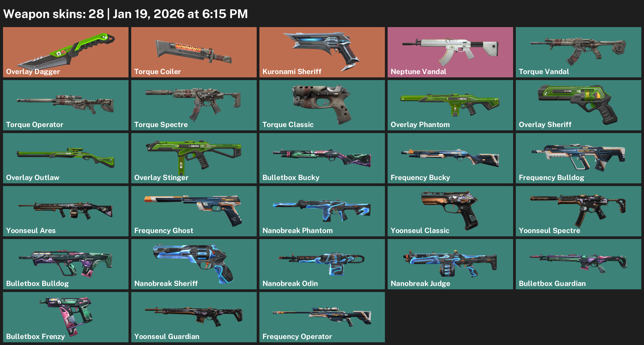 HomeValorantValorant Accounts EU Region EU | 28 Skins | exp SILVER 3 | Neptune Vandal | Kuronami Sheriff | Overlay Dagger | Torque Coiler | Torque Vandal | #TYN2417